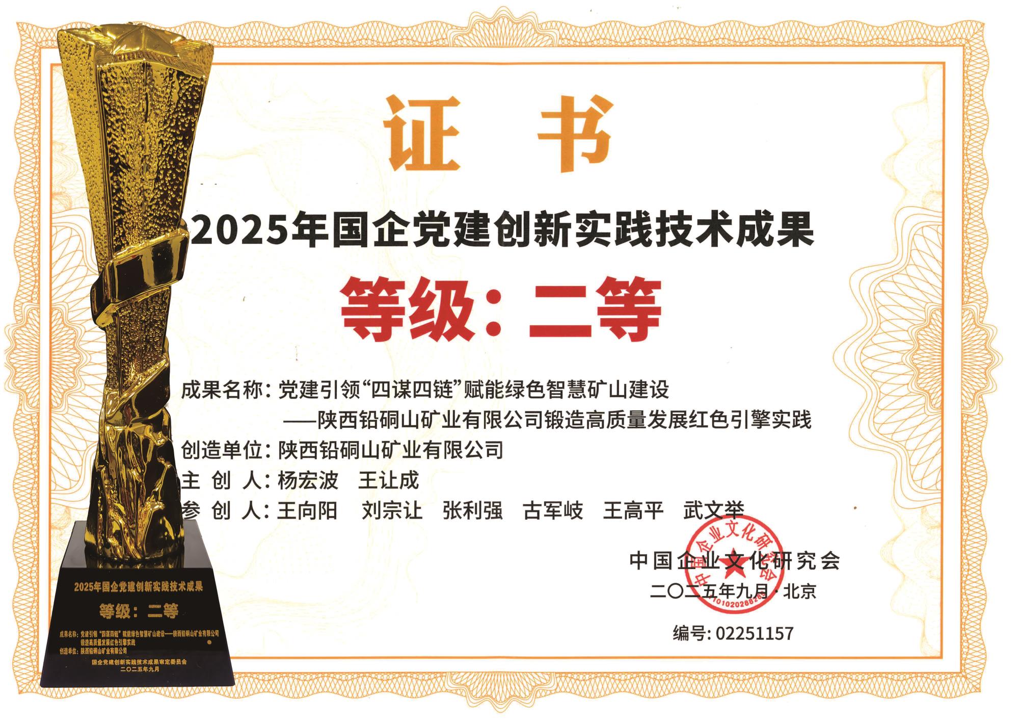 近日,2025 年國企黨建創新實踐交流會在北京召開。會上公布了“2025年國企黨建創新實踐技術成果”評選結果,地礦集團權屬工程公司和西北資源鉛硐山礦業公司申報的黨建創新成果,從全國眾多案例中脫穎而出,雙雙榮獲第二等級。