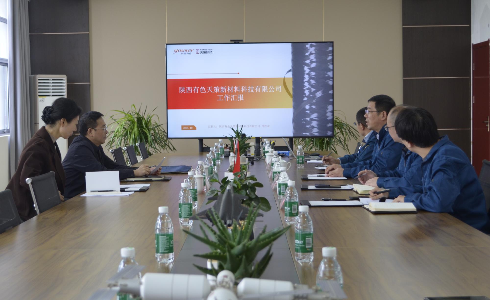 10月21日,陜西有色金屬集團黨委副書記郭仕龍率隊赴陜西有色天策新材料科技有限公司(以下簡稱“天策科技”)調研黨建工作。天策科技黨支部書記、董事長孫勝奇陪同調研。