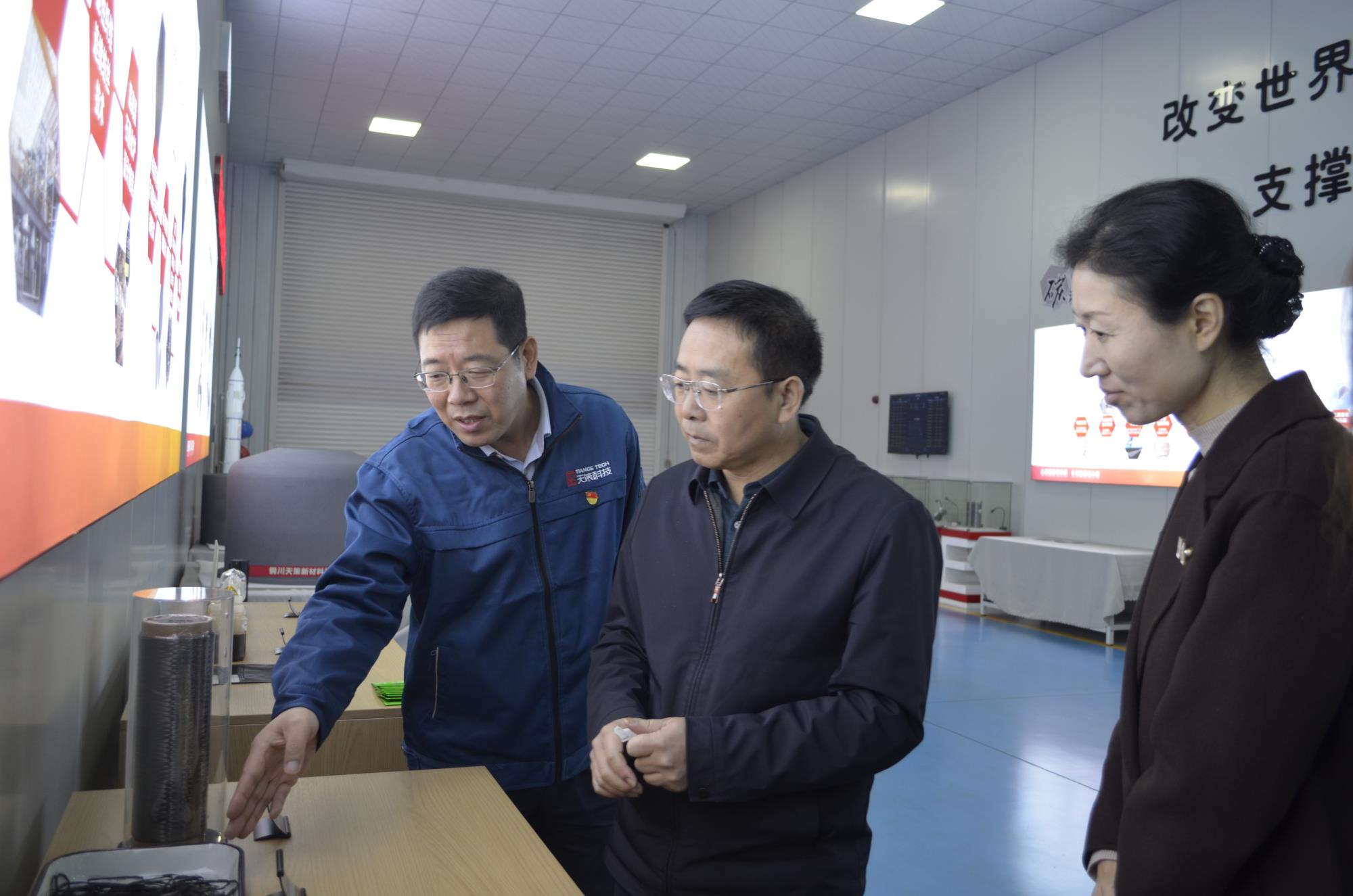 調研期間,郭仕龍一行深入天策科技生產基地、省級制造業創新中心實地考察,參觀產品展廳,詳細了解企業黨建工作、生產經營及技術創新開展情況,并進行座談交流。